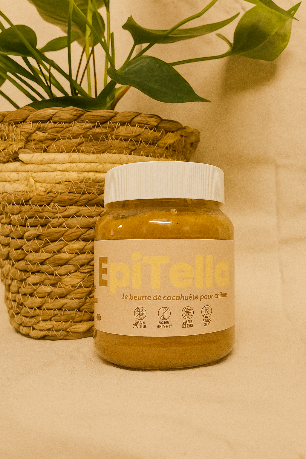 Notre EpiTella est un beurre de cacahuète 100% naturel, spécialement formulé pour les chiens — sans sucre, sans sel, sans additifs, et surtout sans xylitol (toxique pour les animaux).