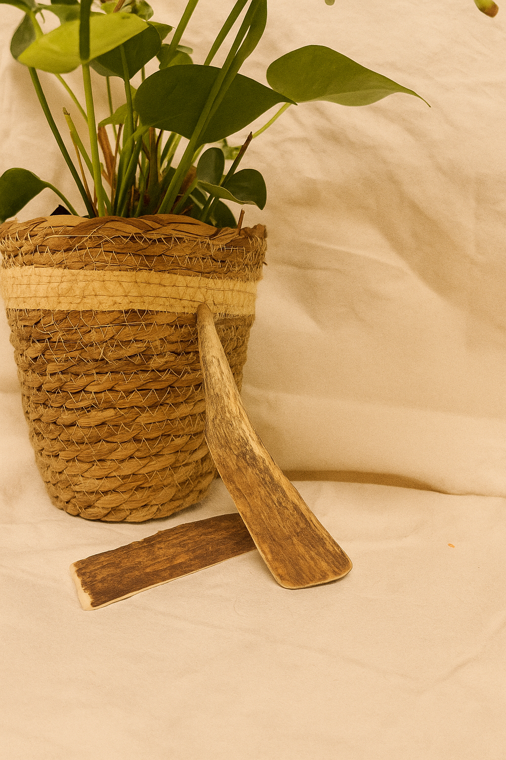 Récoltés sans cruauté, ces bois proviennent de la mue naturelle des cervidés : aucun animal n’est blessé ni dérangé. Ils sont triés, nettoyés et coupés à la main, sans traitement chimique ni additif 💚.